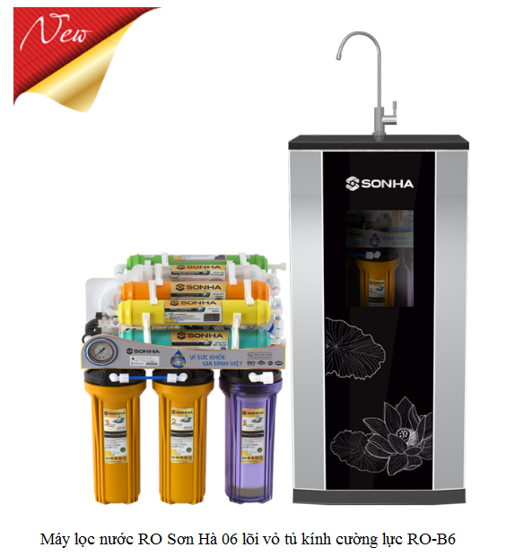Máy lọc nước ro sơn hà 06 lõi vỏ tủ kính cường lực RO-B6 ứng dụng công nghệ của Mỹ- công nghệ lọc nước R.O hàng đầu thế giới.