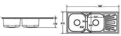 Kích thước chậu inox Sơn Hà S100 : 980x415x190 mm